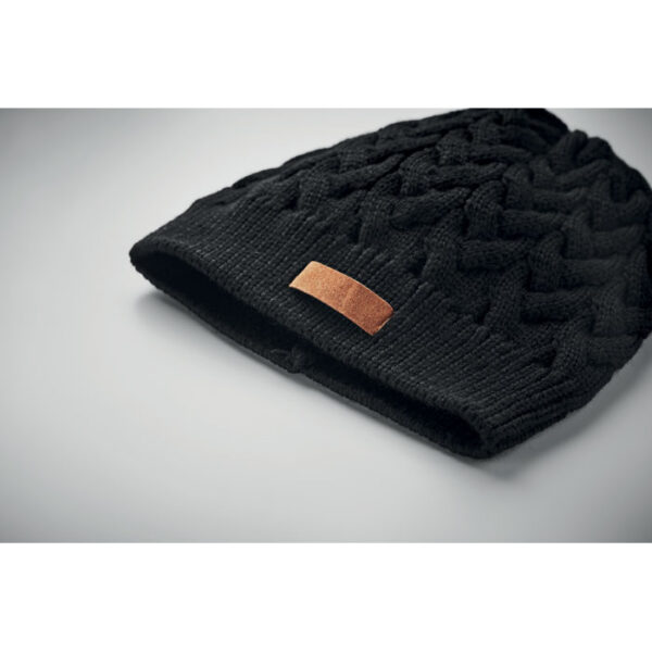 Elegantna kapa s pletenim vzorcem iz reciklirane plastike PET.